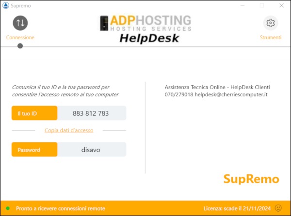 Il servizio è riservato ai Clienti Registrati. Dovrai scaricare ed installare il software indicato di seguito per l’assistenza online.